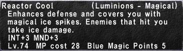 | Reactor Cool can be paired with any of the following spells to create the Magic Attack Bonus Trait: Sound Blast, Cursed Sphere, Eyes On Me, Memento Mori, Heat Breath, or Magic Hammer. | ||||||||||||