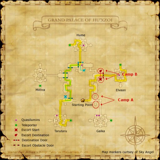 This spell can not be soloed. You will want a basic party to hunt the spell, or a duo with a skilled 75 Tank that uses shadows. A small three person party works best if you cannot get a full exp sort set up. You must be at or past CoP mission 8-2 to enter the Grand Palace of Hu'Xzoi. Party members should have Antidotes, Remedies and Echo Drops for status effects. A way to silence the Zdei is very useful. Stun spells are also a must.